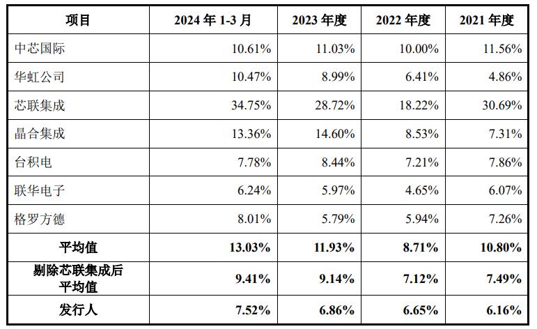 按照业务类型,2021年、2022年、2023年和2024年1-3月(报告期),公司主营业务收入主要来源于晶圆代工收入,各期晶圆代工收入分别为18.5亿元、25.82亿元、25.46亿元和6.7亿元,占主营业务收入的比重分别为63.27%、77.45%、67.08%和73.33%。