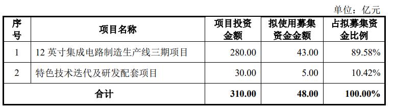 从募集资金的用途也能看出新芯股份扩张产能的迫切,招股书称,公司计划投资310个亿,用来建设12英寸集成电路制造生产线三期项目、特色技术迭代及研发配套项目,其中此次计划募集资金48亿元。