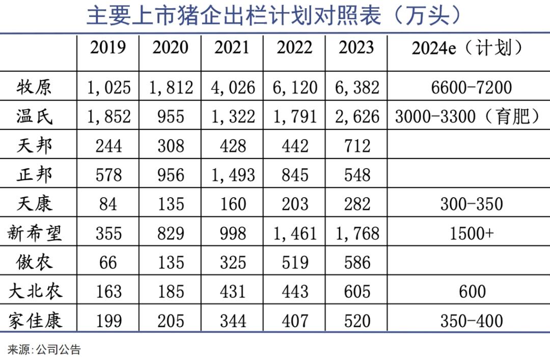 林印孙最终惨淡出局,正邦科技由江西双胞胎集团接管,成为中国养猪业历史上最具教育意义的商业案例。2023年,正邦出栏量暴降300万头,直接回到了2019年的水平;新希望也认清现实,无奈猛踩刹车,后续大幅调降销售目标,终于迎来好转。