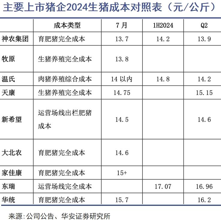 对比来看,业内也只有牧原和神农集团能将养殖成本降低至14元/公斤以内,处于国内绝对的第一梯队。