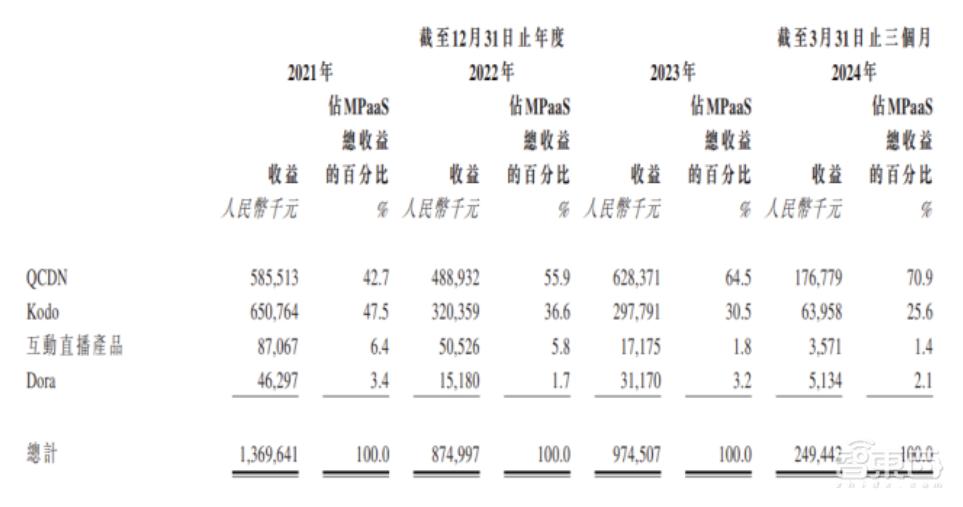 MPaaS业务的创收主要依靠QCDN和Kodo两大项目,今年一季度,二者的合计营收占业务总营收的比例为96.5%。