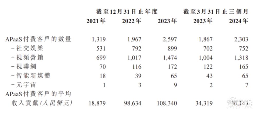 采用APaaS音视频解决方案的APaaS业务新客户数量逐渐增加,平均收入贡献也大幅增加。
