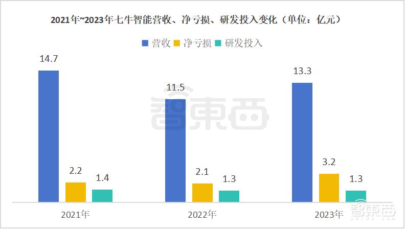 ▲2021年~2023年七牛智能营收、净亏损、研发投入变化(智东西制图)