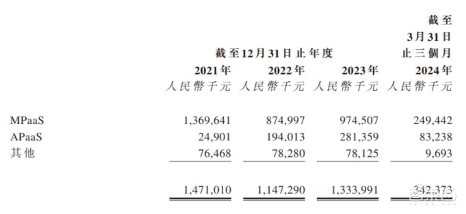 截至2024年3月31日,该公司今年一季度的营收额达3.4亿元,同比增长26%,毛利率为20.6%。其中,MPaaS业务的收入为2.5亿元,同比增长33.9%,在公司总营收中占比超7成;APaaS业务的收入为0.8亿元,同比增长29.9%,约占公司总营收的1/4。