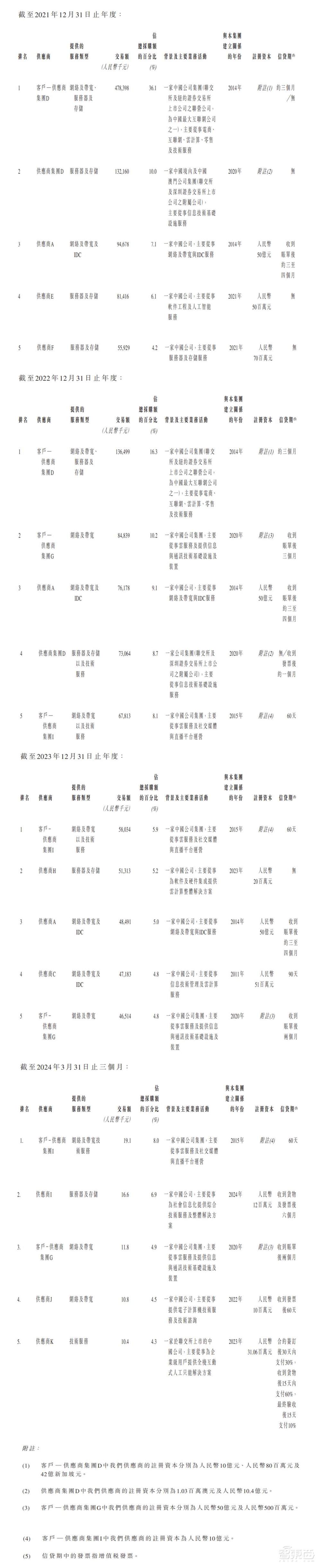 七牛智能的供应商主要为云技术行业中提供以下3类服务的公司:网络及带宽服务、互联网数据中心(IDC)服务、服务器及存储服务。