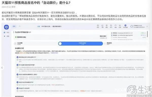 或许是为了消除用户的抵触情绪,此次淘宝天猫在重启预售的同时,也针对预售商品推出了自动跟价服务。据了解,通过这一服务,平台将实时监测商品与全网同款商品的价格差异,如价格不具备竞争力,则将自动触发由商家出资的单品补贴优惠,从而保持价格竞争力达标。