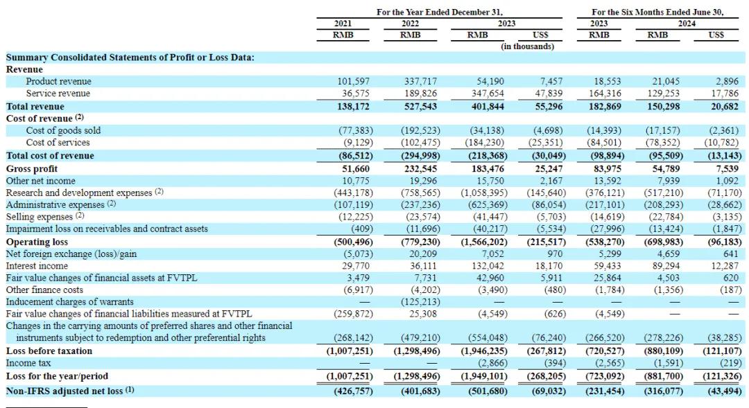 今年上半年,亏损进一步扩大。2024年上半年,文远知行的营收为1.5亿元,同比减少17.8%,调整后净亏损再扩大,较2023年上半年多亏损了超8000万元。