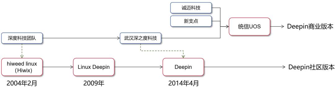 统信诞生后,武汉深之度继续发行Deepin社区版本,面向社区用户。而统信UOS,则面向商业用户,相当于Deepin的商业版。