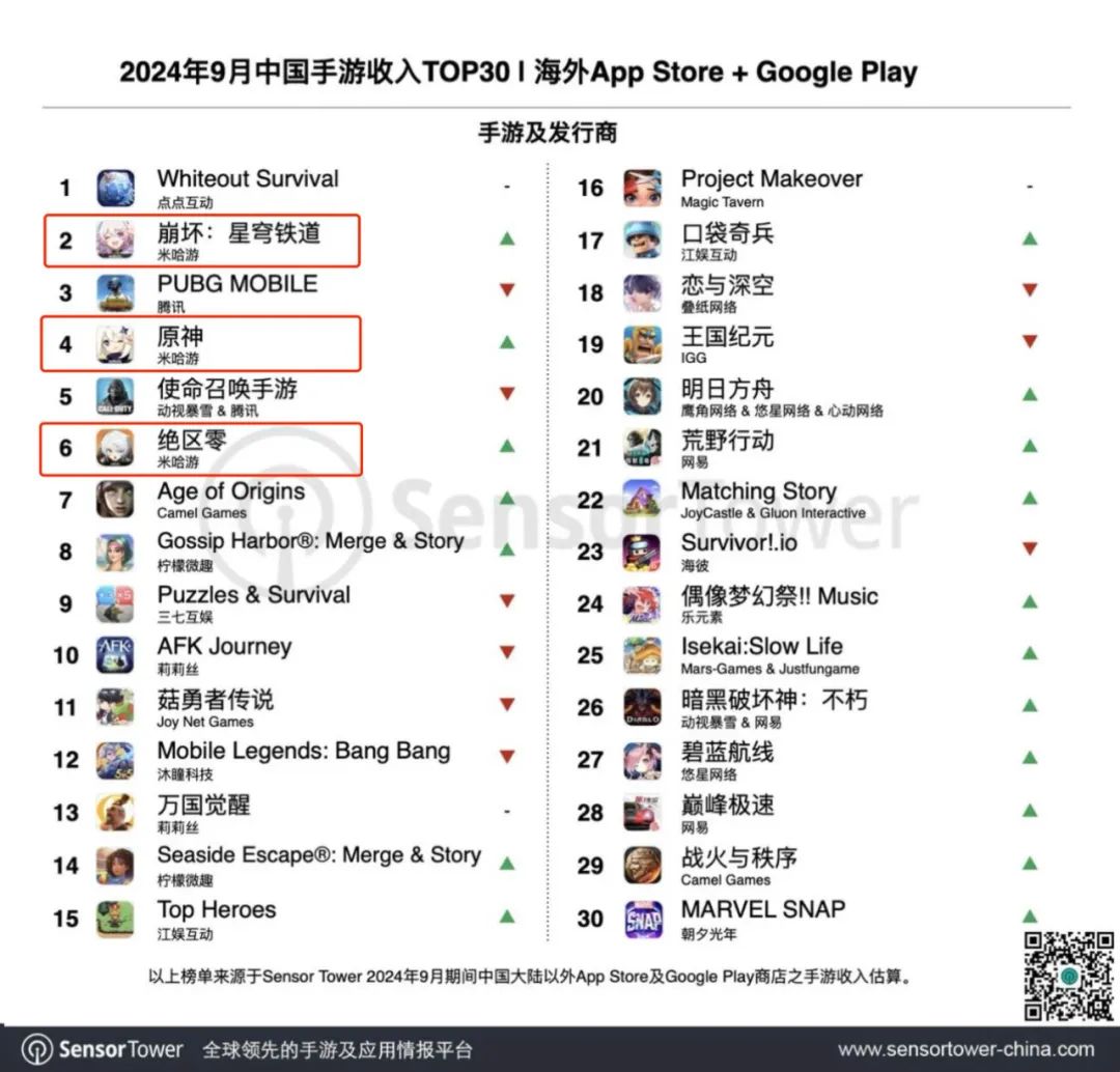 (9月出海手游收入Top6里有3款都是米哈游的)