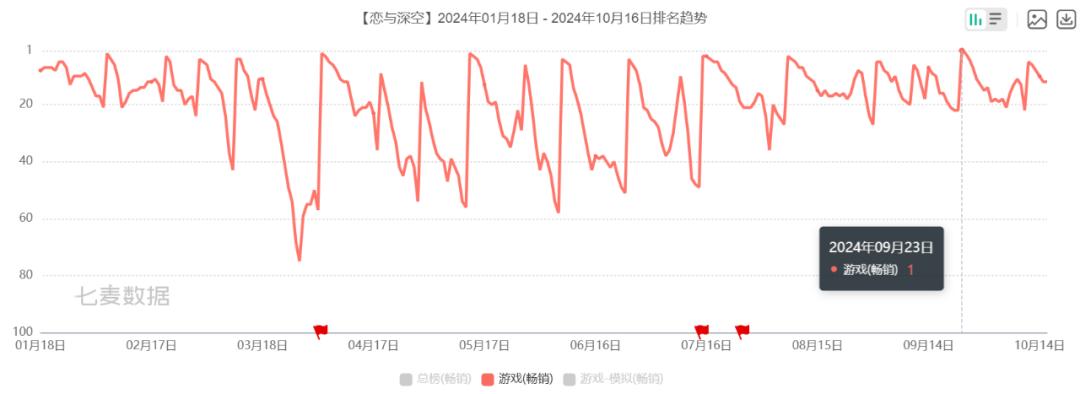 9月23日,《恋与深空》在海内外市场同步开启国风主题活动“欲揽旖旎色”,上线当日即刷新了游戏自发布以来的全球流水最高纪录,并同时斩获中国与全球iOS手游畅销榜双料冠军。