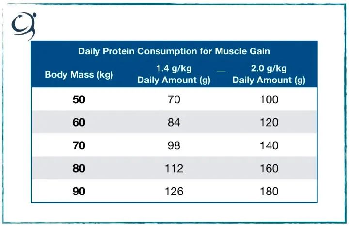 蛋白质作为肌肉合成的原料,推荐摄入1.4-2g/kg/天,以体重50kg为例,蛋白质摄入量可以达到100g/天。