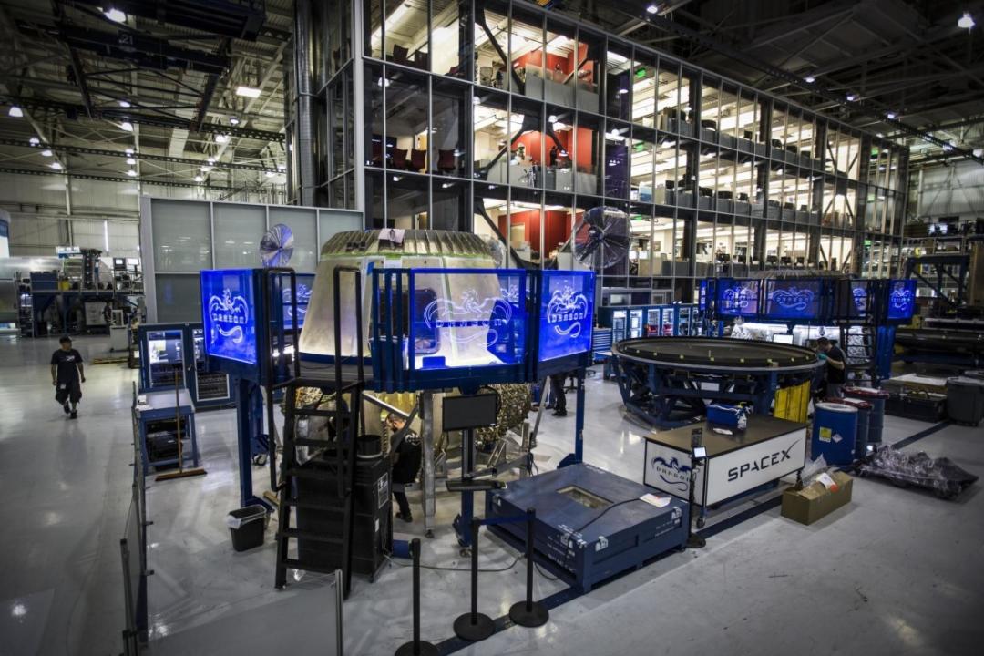 与大多数航天器制造商不同,SpaceX的核心工厂设在了公司总部里面,所有火箭、飞船的核心零部件都在这里生产组装。在工厂最中间,各种巨大的焊接施工区域之间,有一栋三层楼高的透明办公楼,是火箭工程师的办公室。