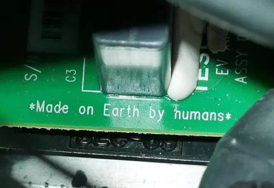宇宙漂流的特斯拉跑车,一块电路板上写着“Made on Earth by humans”