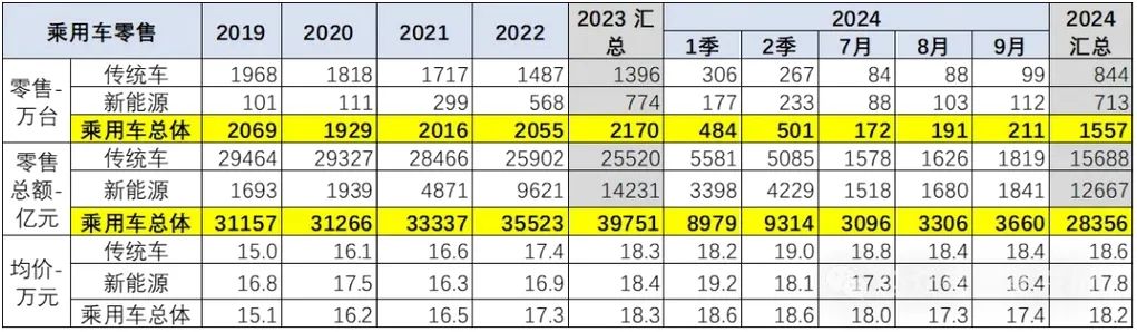 日前,乘联会崔东树发布了9月份乘用车价格段市场结构分析。数据指出,2019年平均车价是15.1万元,2020年是16.2万元,2021年是16.5万元,2022年是17.3万元,2023年是18.3万元,今年累计略微下滑至18.2万元。