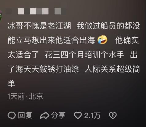 你眉头一皱,就当他马上要说没些“乖摸摸头”、“从你的全世界路过”类的无用鸡汤,结果他真指了条路:“你去当海员吧。”