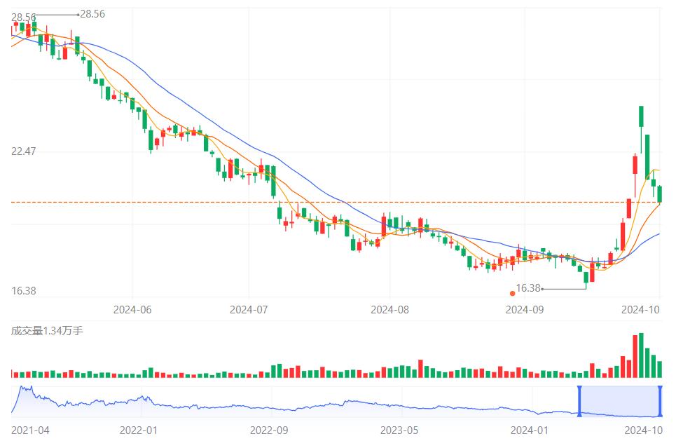 9月19日,味知香股价开始大幅上调,到9月30日,股价直接突破20元,当日收盘价文22.28元/股。可惜好景不长,“十月一”长假回来的第一个交易日,味知香虽然仍有余力跳空高开,但第二日10月9号却一度跌停,之后连续三天股价回落,如今已然跌破20元/股的价格。