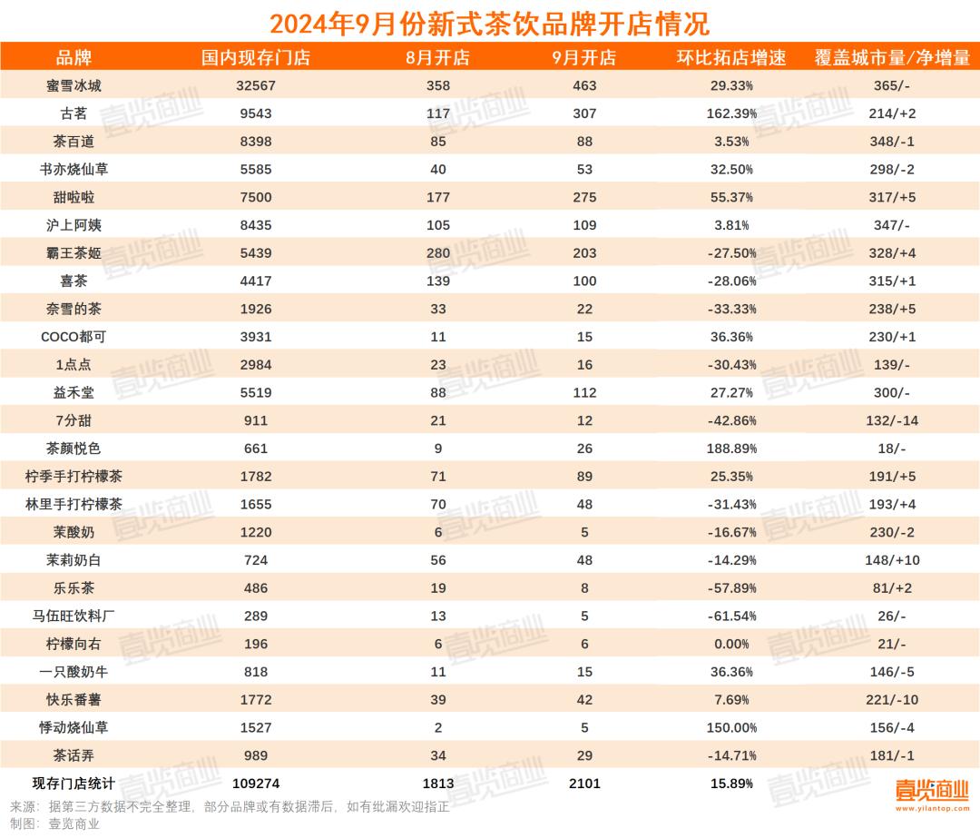 新茶饮9月新开2101家,7分甜门店跌破1000