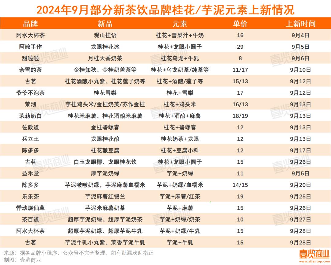 天气转冷,行业原料上新也有了新趋势:桂花、芋泥成为品牌最爱。