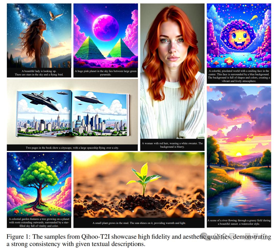 对于Text-to-Image,如图所示,Qihoo-T2I能够生成与提供的文本提示非常匹配的逼真图像。