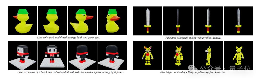 最后是多视图生成,宝剑、小黄鸭等任意素材均可实现转3D效果。