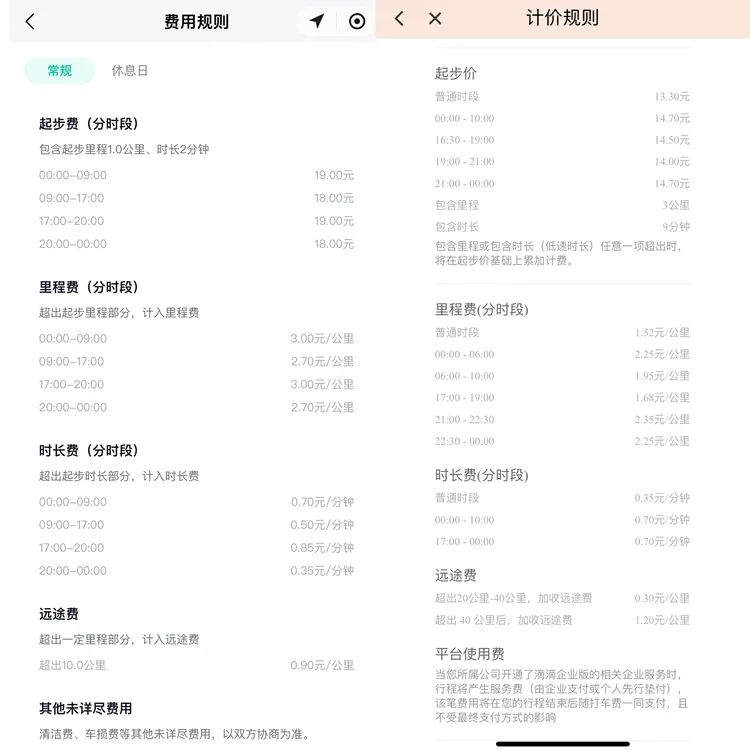 北京萝卜快跑与快车的定价规则对比 图源:官方
