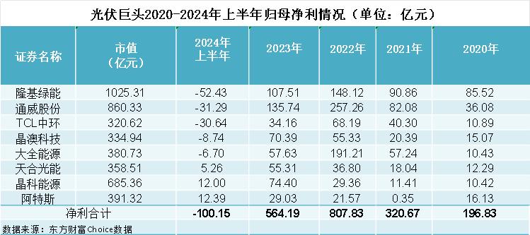 “双料巨头”通威股份、“硅料之王”大全能源、“硅片龙头”TCL中环,也都大亏。