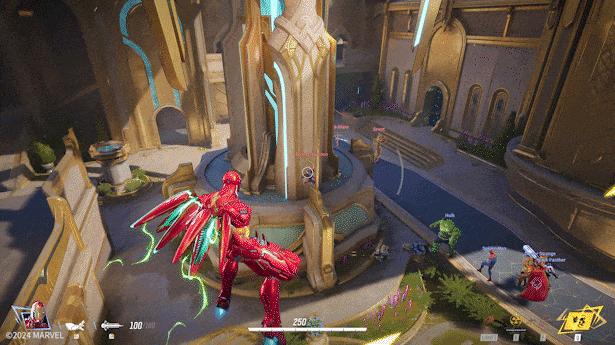 游戏中,玩家会以6v6规模分队进行TPS+MOBA形式的对抗,达成推车或是占点的战略目标。作为一款漫威IP英雄射击,游戏在保留漫威英雄设定的同时,也加入了特色「英雄连携」机制,队伍中存在特定“羁绊”即可使出合击技能。譬如绿巨人可以将伽马能量传导给钢铁侠,增加后者浮游炮攻击的伤害。