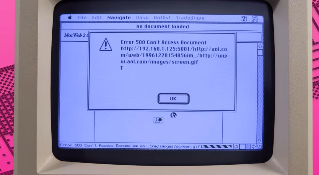 Hunter 尝试运行 Mac Web 2.0 浏览器,这是由 Tradewave 在 1996 年发布的,虽然不支持 CSS 或 JavaScript,但能够处理基本的 HTML——然而,现代网站大多采用加密通信,老旧的 Mac 浏览器自然无法支持 HTTPS 协议。