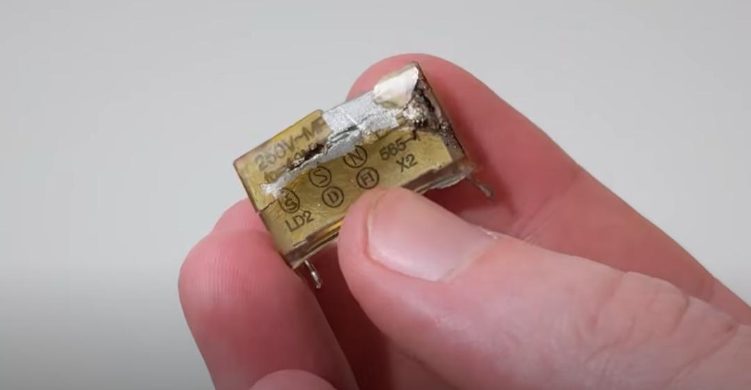慌忙之间,Hunter 用螺丝刀打开电脑外壳,经过检查后发现:得,这还没干啥呢,电容器就先爆了。