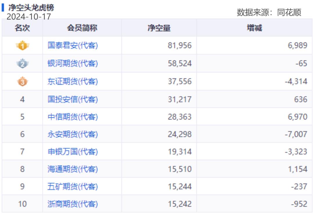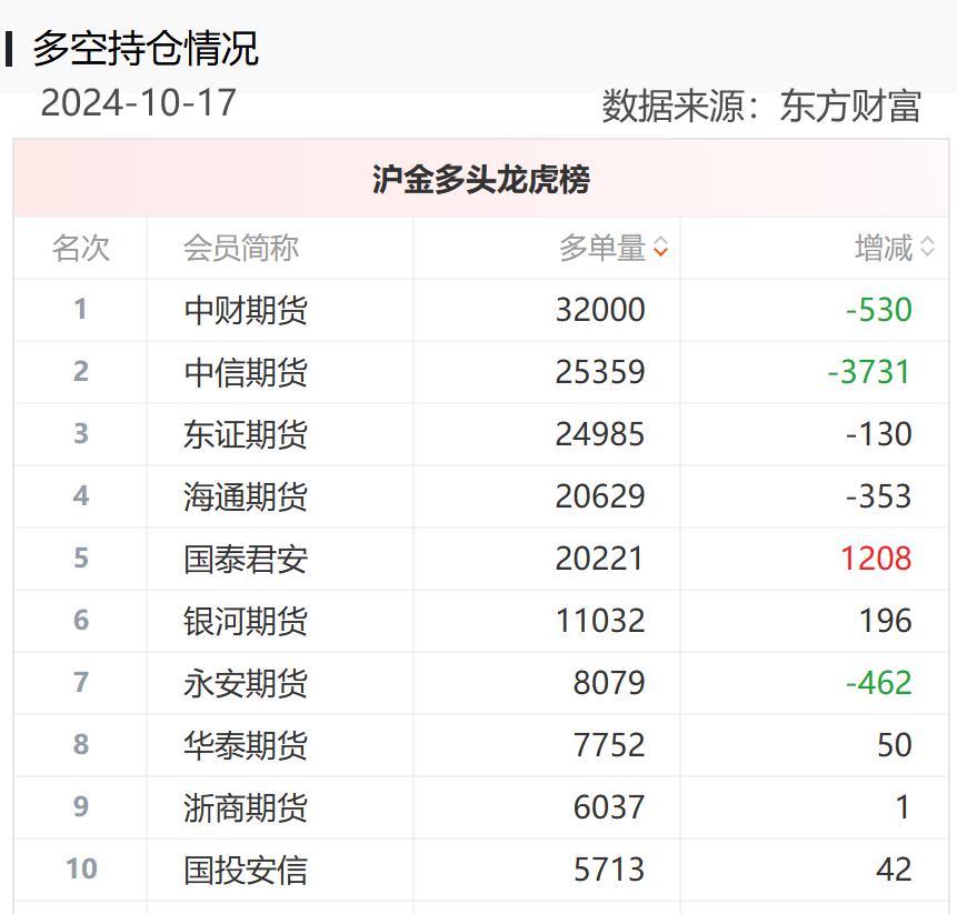 实际上,中财期货席位不仅重仓做多了黄金期货,也重仓做多了PVC期货。同花顺、东方财富等数据显示,截至10月17日,中财期货席位上的黄金多头持仓量为3.2万手,位居上期所黄金期货多头持仓榜第一;中财期货席位上的PVC多头持仓量为13.23万手,也位居大商所PVC期货多头持仓榜第一。