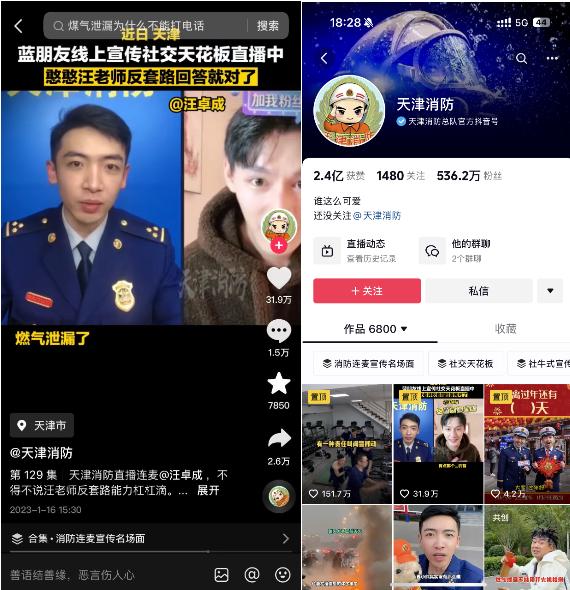 厦门公安“直播带货式”普法短视频被新华社、人民网、福建发布、福建共青团、福建电视台等媒体陆续跟进报道;深圳卫健委多个视频出圈,其中最高一个获赞360.9万;天津消防直播连麦式宣传,目前已收获535.8万粉丝……