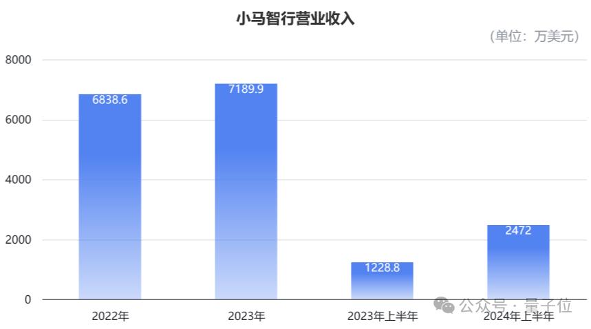 招股书显示,营业收入方面,2022、2023年及2024年上半年,小马智行营业收入分别为6839万美元(约4.9亿元)、7190万美元(约5.1亿元),以及2472万美元(约1.8亿元);其中,2024年上半年的营收规模,相比去年同期增长101.2%。