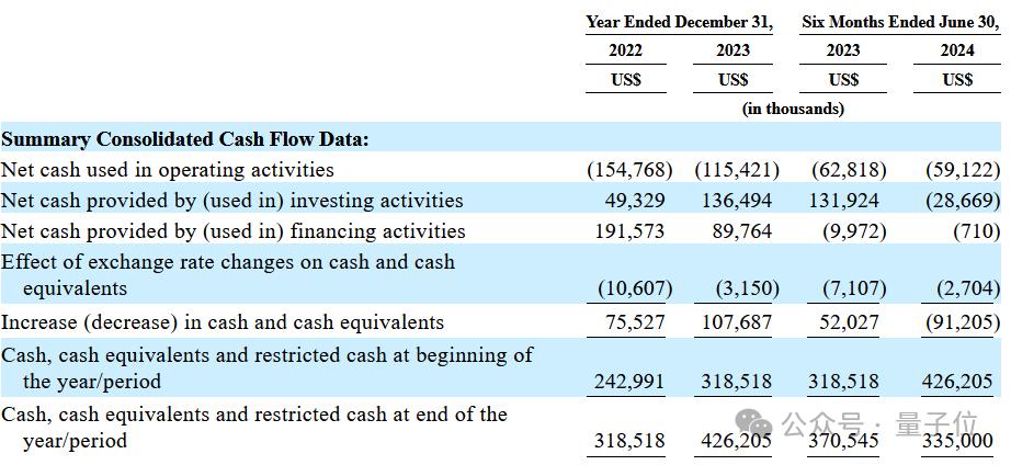 24H1经营活动、投资活动以及融资活动所消耗的现金流分别达到5912万美元(约4.2亿元)、2867万美元(约2亿元)、71万美元(约506万元);上半年现金流净额减少9121万美元(约6.5亿元)。