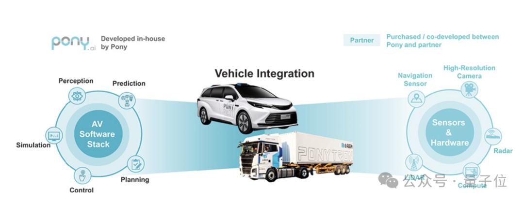 而这个大脑或者说AI司机,本身不受车辆平台种类限制,集成各种传感器类型和算法模块,包括Robotaxi、Robotruck、以及量产乘用车在内的各个技术方案,底层核心技术复用率超过80%——包括车端的感知识别、预测博弈模块,以及后端的数据处理、训练部署能力等等都是通用。