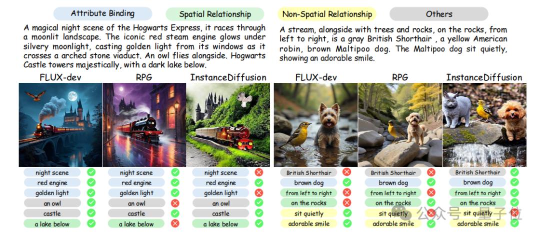 RPG通过MLLM的辅助,将复杂的组合生成任务分解为简单子任务;