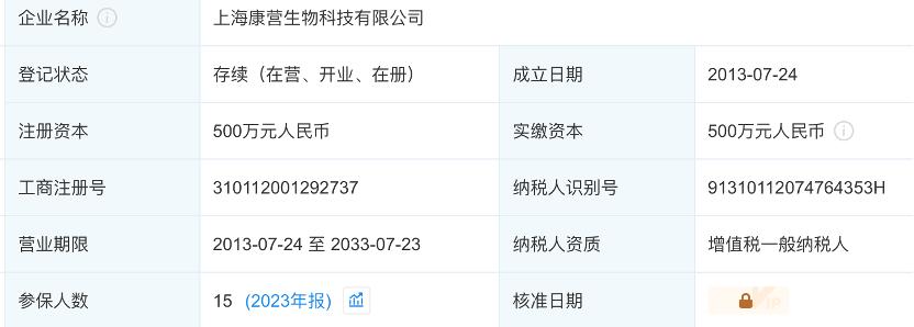 IPO日报发现,企查查显示,上海康营于2013年成立,刚成立就肩负采购“重任”。此外,截至2023年,公司参保人数也仅有15人。