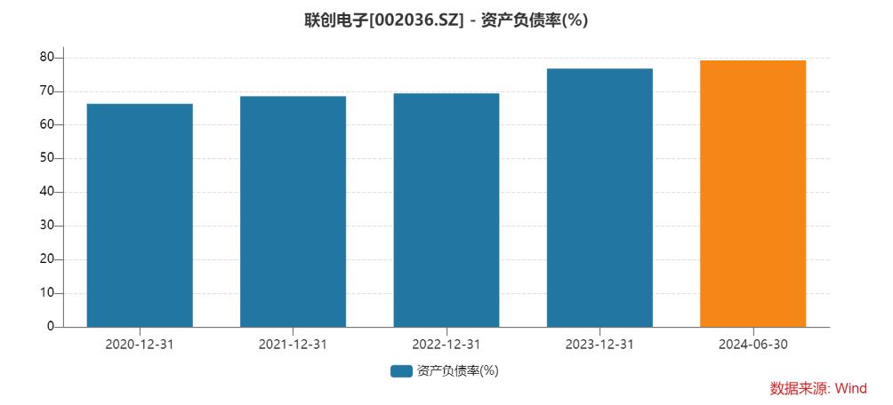 截至2024年6月30日,联创电子的资产负债率为79.19%。