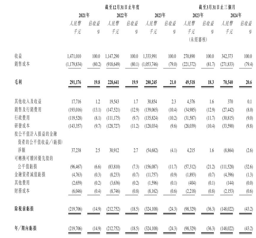 尽管获得了众多知名资本的鼎力支持,七牛云的业绩表现却并未能如人所愿。据招股书披露的财务数据,七牛云在近年来面临了不小的业绩压力。具体来看,2021年至2023年以及今年第一季度(以下简称“报告期内”),七牛云的营收分别为14.71亿元、11.47亿元、13.34亿元和3.42亿元;报告期内经调整后的净亏损则分别为1.06亿元、1.19亿元、1.16亿元和0.24亿元,累计亏损3.65亿元。