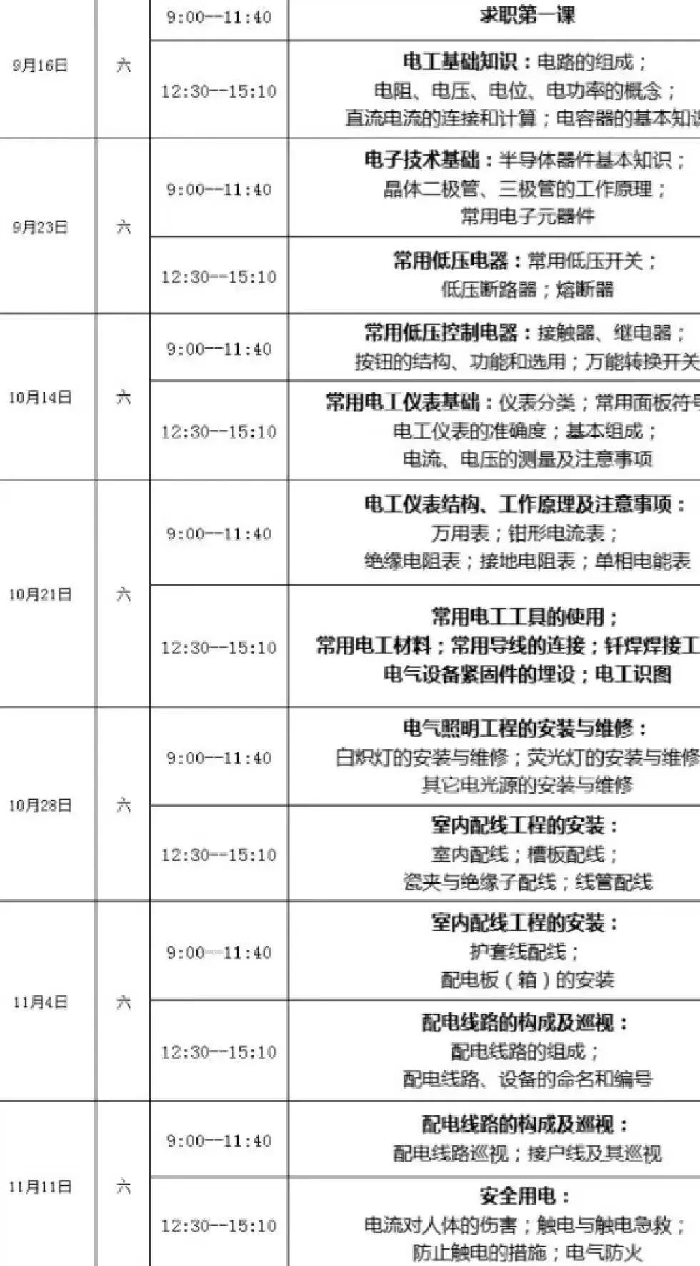 图 | 某电工培训学校课程