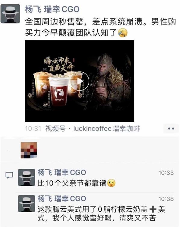 瑞幸CGO(首席增长官)杨飞第一时间在朋友圈宣布重大发现:男性购买力颠覆团队认知。