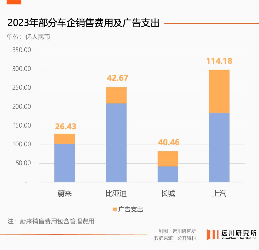 2023年,详细披露了广告开支的四家上市车企(上汽、比亚迪、长城、蔚来)总共花掉了222亿预算,差不多是知乎去年营收的5.2倍。