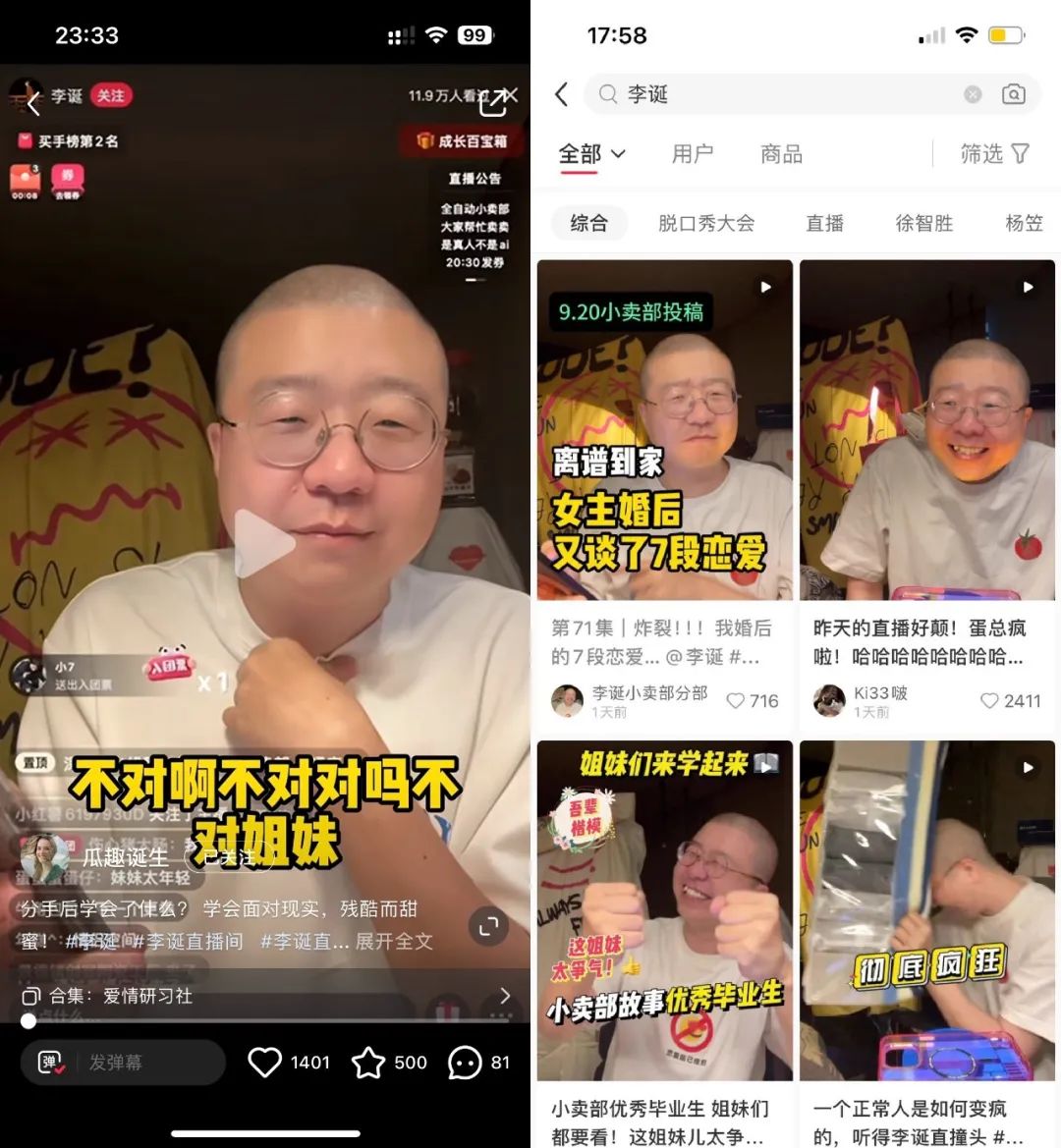 直播间里的李诞业务纯熟,读信环节被观众们离奇曲折的情感投稿变成线上知音故事会,李诞听女生诉苦,言必称姐妹,按流程劝分,众多名场面在小红书广为流传。