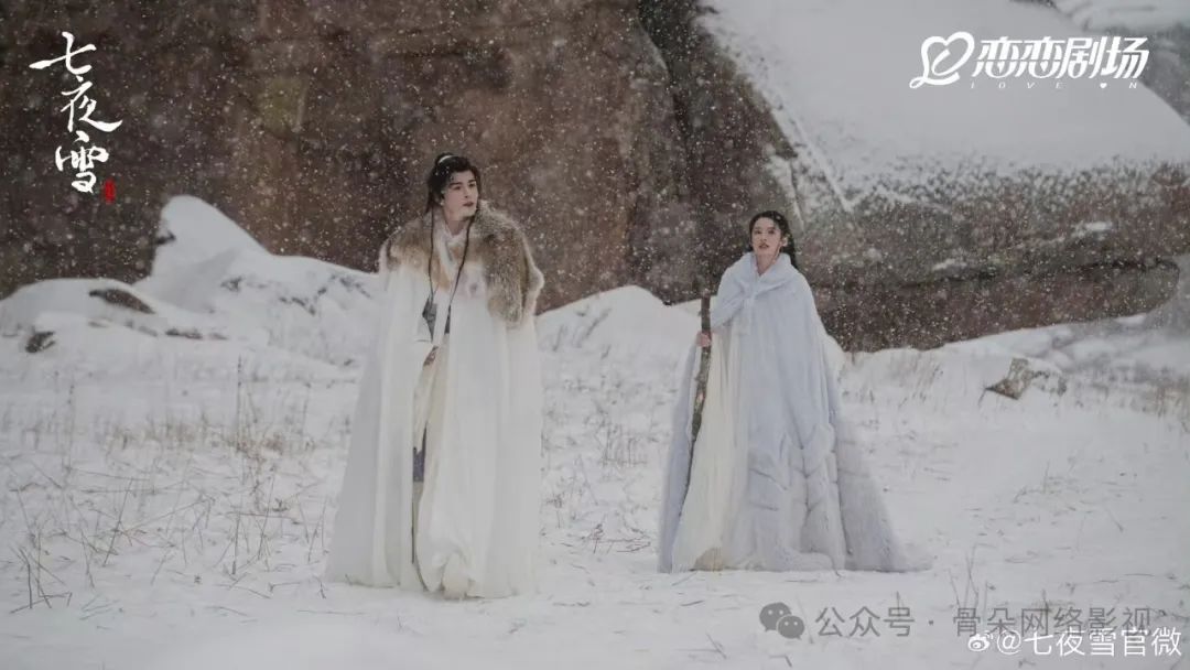 《七夜雪》原作只有十九万字,情节简单,情感留白很多,需要增添扩充很多情节,改编难度更高。为了保留原作的意境和风味,这些增添改动的情节又不能太甜或者太夸张。所以男女主包括男二与女主的大多数互动发生在谷中雪景之下的单一场景,靠喝酒、吟诗、对弈等推进的情感关系虽然很古典美学,但过于平缓缺少起伏,一直处在情感的小幅度拉扯里,十年前这样的作品或许还会有一席之地,但被短剧和短视频洗礼过的观众是没有这样细品的耐心的。