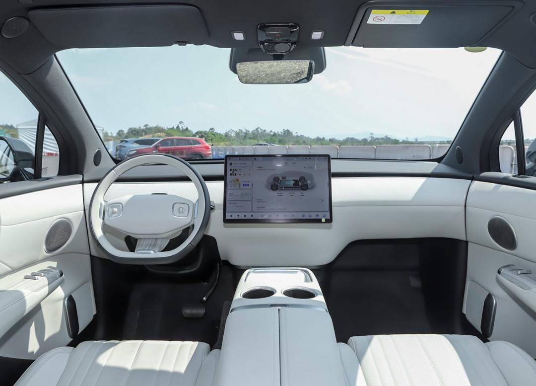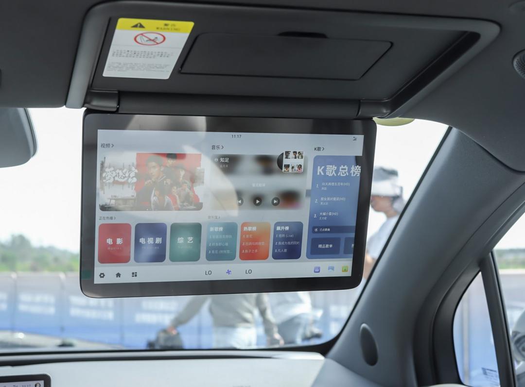 没有仪表但全系都给了 HUD ,中控屏是可变朝向角度的 “ 向日葵 ” 屏,主副驾都有可以躺下来的零重力座椅。在副驾遮阳板那里放了一块娱乐屏,方便躺下来刷剧,跟长安自家的深蓝 S7 一个位置。