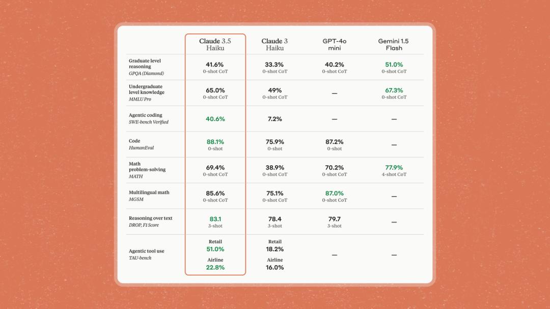 Claude 3.5 Haiku 响应速度最快,性能媲美 GPT-4o mini