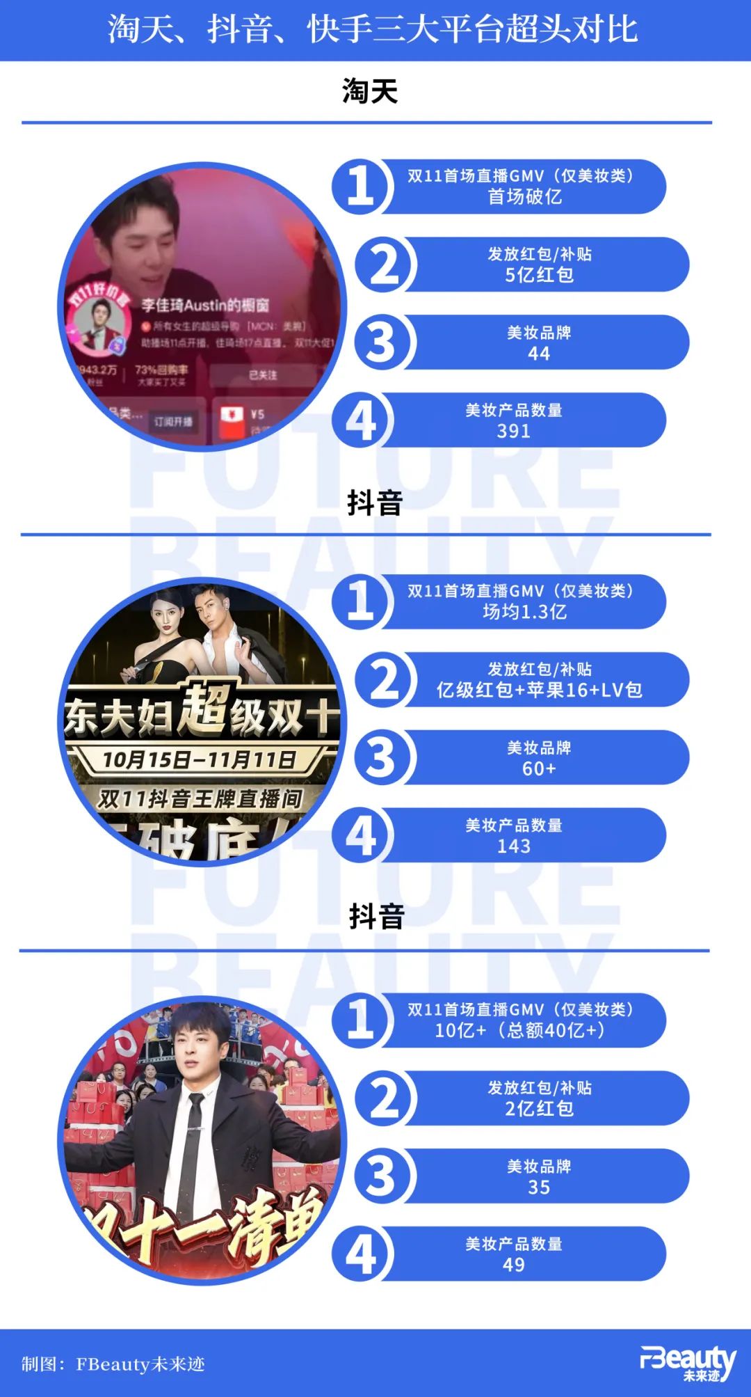 如果把李佳琦、广东夫妇和辛巴的比拼视为淘天、抖音和快手的比拼,那么各平台和主播所代表的“平台特色”以及背后的“生意取向”就更为明显。