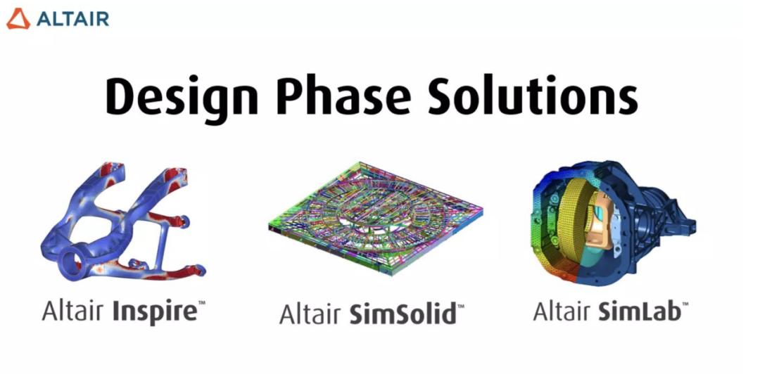 如上图所示,这个阶段的解决方案包括了Altair Inspire、Altair SimSolid和Altair SimLab。