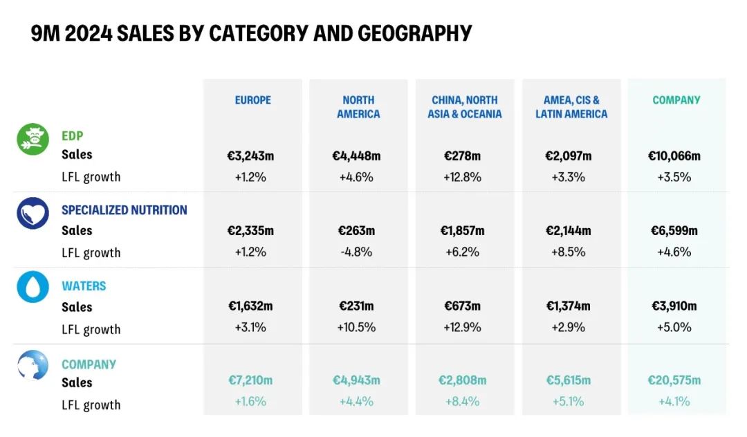 他说,达能在这个大区的市场份额表现出色,这要归功于许多有影响力的创新;同时,针对新生儿的一阶段配方奶粉在今年第三季度“转绿”。尽管现在就庆祝该品类已经稳定下来和恢复增长还为时尚早,但这可以增强企业的信心。