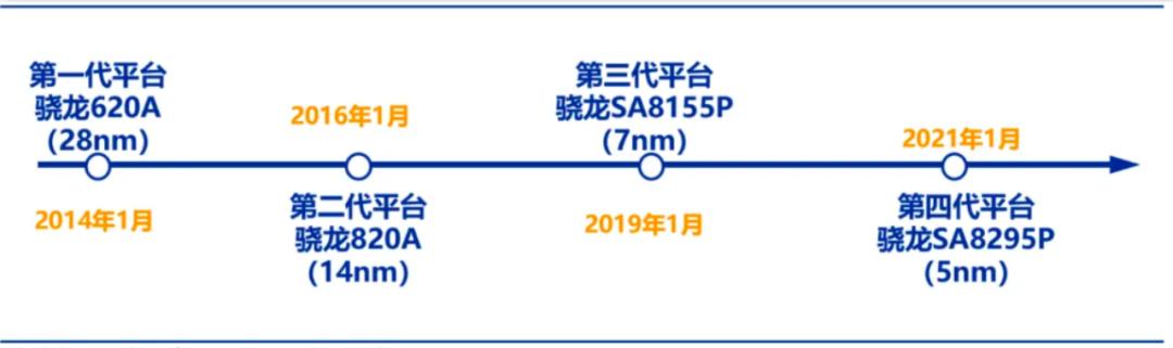 从2014年1月推出第一代座舱芯片602A,到2016年第二代平台骁龙820A,再到骁龙SA8155和骁龙SA8295P—— 七年、四代,高通凭借其在安卓生态的优势几乎垄断汽车座舱高端市场。