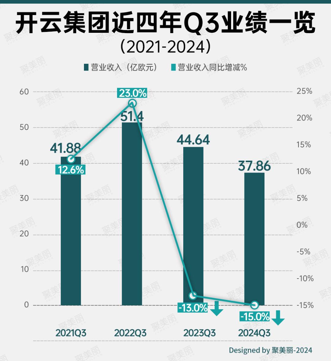 1.开云集团Q3总营收为37.86亿欧元(约合人民币290.86亿元),同比下滑15%;